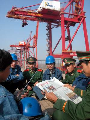 盛世逢盛会,甬城街头喜气洋洋。今天,举世瞩目的党的十六大隆重开幕了。满怀喜悦的宁波北仑港口边检和海警部队在各自的工作岗位上关注十六大开幕。