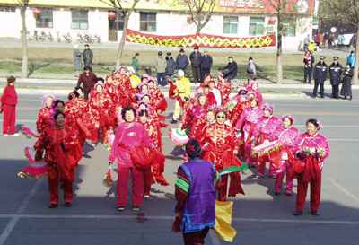 今天上午10点半,江泽民总书记代表第十五届中央委员会向大会作报告刚一结束,呼和浩特市新城区曙光街社区老年秧歌队,就来到内蒙古自治区党委大门前,敲锣打鼓,载歌载舞,庆祝中国共产党第十六次全国代表大会胜利召开。