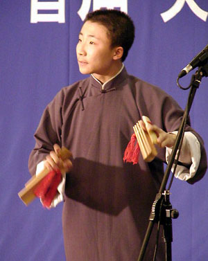 来自中国北方曲艺学校、天津市少儿曲艺学校的小演员们参加了比赛。虽然小演员们“活”使得仍有欠缺,但他们认真投入的表演不时赢得观众的掌声。其中,马军同学的快板书《三打白骨精》、许文强同学的山东快书《武松打虎》,节奏错落有致,表演生动投入,模仿惟妙惟肖,获得好评。由张添奕、王惟智翻演的相声名段《小鞋匠的奇遇》,捧逗配合紧密,疾缓有序,高低错落,并加入了表演者的理解,不时引起一阵阵笑声。