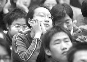 当精神矍铄、神采奕奕的陈省身先生坐着轮椅出现在大讲台上时,立刻引来在座师生的热烈掌声。