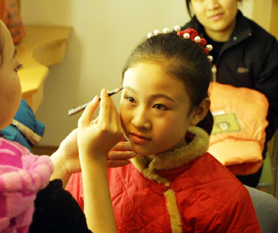 颁奖仪式之后举行了汇报演出。蔡成首先上台表演。随着他手中快板的花点声响起,剧场里响起一阵叫好声。随后上台的小演员们认真、投入的表演,也不时赢得全场观众的掌声和喝彩声。点此看多幅演出图片