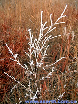 这种野草的“脑袋”染了露霜,与红色的秸秆交相辉映,煞是好看