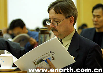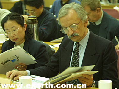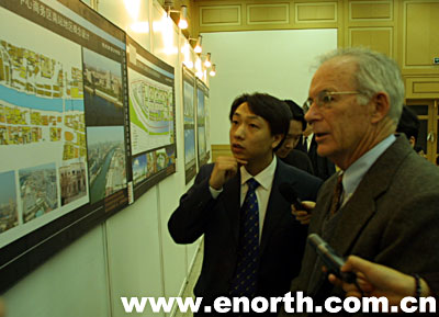 | 会前,国内外设计公司代表饶有兴致地观看会场两侧的展板 |