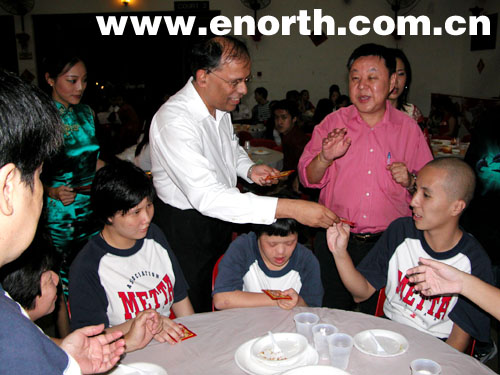 北方网消息:步入2003年,新加坡的中国留学生们以他们自己独特的方式迎接新春的来到。尽管新加坡连日来阴雨连绵不断,新加坡管理发展学院(MDIS)的两百余名不同国籍、民族、信仰的同学们,都聚集在静山联络所,以自己的实际行动向新加坡福利院的弱势群体献上自己一片爱心。