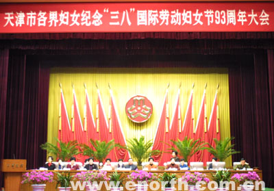 大会表彰了天津市“三八红旗手(集体)”,妇联系统先进集体、个人,“津门女将”和“天津市最美好家庭”。会上,“三八红旗集体”代表天津女排队长丁红莹,天津妇联系统先进个人标兵汉沽区赵秀荣,津门女将代表天津南华制鞋有限公司孙茂芳,最美好家庭代表和平区新兴街张家兰等先进典型代表分别发言。来自社会各界的妇女代表千余人参加了大会。(记者:元冬维 宋剑锋)