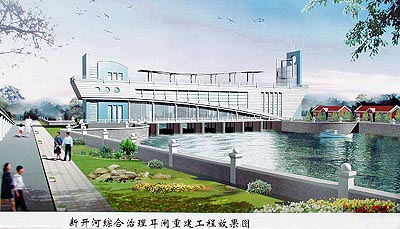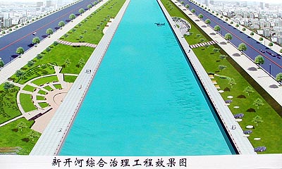 工程负责人告诉记者,此次新开河治理将恢复河道泄洪能力的基础上,重点进行堤、林、路综合治理,建设集防涝、环保、通航、亲水、休闲、娱乐、游览、观光等多功能于一体的河道工程,构建新的城市靓丽风景线。综合治理统一考虑河道景观与海河综合开发临近区域景观、沿岸风格和耳闸管理院区的关系,兼顾耳闸与海河的景观布局,遵循人与自然和谐原则,营造良好的亲水氛围,设计观景台和涉水台,河道两岸进行绿化,景观涉及在保留原有历史风貌的基础上融入现代因素,体现历史文化品位。一期工程包括两项内容,一是对上游耳闸至中环线3公里河道进行清淤,改造、美化、绿化两岸,改造、加固沿河门口,提高河道的分洪和排涝能力,对市区段排污口进行封堵。其中,2003年汛前要完成耳闸至京津桥800米的河道治理示范段建设,11月30日前完成耳闸至中环线约3公里河道水下部门治理。二是对老耳闸进行维修加固,重建分洪闸、船闸。该工程去年11月份开工,计划今年6月30日前完成闸门安装,具备行洪条件,年底全部完工。下游河道治理,明年将继续实施。
