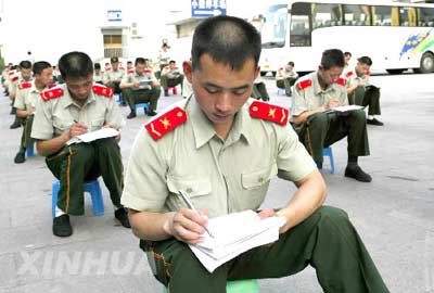 6月24日,武警某部战士在参加学习“三个代表”知识测验。“七一”前夕,该部深入开展了“学习实践‘三个代表’,永远做党和人民忠诚卫士”的系列活动。