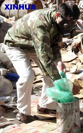 8月10日,工作人员在齐齐哈尔市铁南废品收购部进行消毒作业。齐齐哈尔侵华日军遗留毒剂泄漏伤人事件目前已基本得到控制。当地已对有毒物质污染的11个现场进行了侦检消毒。齐齐哈尔市民目前生活正常,市区平静。