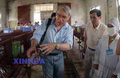 | 8月15日,世界卫生组织专家弗朗西斯在汕尾陆丰华侨农场果子狸养殖场了解果子狸的喂养等问题 |