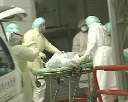 高:他是在今天,和平医院的说法是说今天早上9点半的时候他们接到总医院的通知,总医院是在两天前接获了电话说有发烧的现象,因此总医院立刻派救护车进行观察跟治疗,后来发现他的肺部可能有发炎的现象,而且烧退了又烧,调查发现这是一起实验室的感染个案,因此今天早上9点半的时候打电话给和平医院紧急通知和平医院,赶快派来救护车,因为在台北市这个和平医院是属于SARS的专责医院,因此救护车在今天马上就把这名SARS病患在短短30分钟之内非常迅速送到和平医院,有两辆救护车送来和平医院9楼,到目前为止,和平医院有77间负压隔离病房来使用。