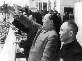 5月1日上午,毛泽东在海河广场与天津人民欢度“五一”国际劳动节。同日下午,参观在天津举办的“河北省工业交通运输基本建设技术革命展览会”。