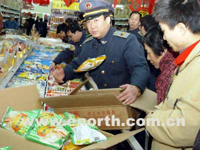 | 河东区工商局执法人员检查超市 |
