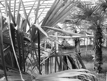 棕榈植株秀美、翠绿,是典型的热带雨林植物,以前本市鲜有。即使有,也都是以盆相装的小物件,花展后还得入窖存放,为给水上公园植物观赏区大面积郁金香做点缀,园方于去年秋季从南方引种5株近2米高的大棕榈树栽植此间,并搭设暖棚助其越冬。