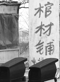 随着清明节的临近,违法销售迷信丧葬用品现象在本市又有所抬头。津郊一些公路旁竟出现了棺材铺,他们将棺材按材质不同以1000元至1500元的价格在路边进行“公开展卖”。
