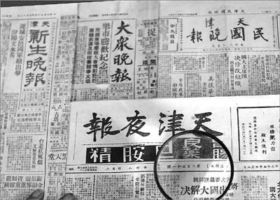 北方网消息:8日,南开区保山道的居民胡玉栋及家人从一沓废旧报纸中发现了1947年和1948年发行的《天津新生晚报》、《大众晚报》、《天津夜报》和《天津民国晚报》。据胡先生介绍,这些晚报可能是其父亲在建国前后收藏的。