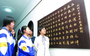 北方网消息:南开中学百年校庆前夕,南开中学校友、我国著名红学家周汝昌先生为母校百年校庆献词。昨日,该献词被安放在了南开中学即将开馆的校史馆内,以供观者欣赏。
