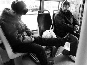 一人占俩座儿 公交车上睡“卧铺”(图)