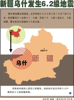 新疆乌什县15日19时16分14秒发生里氏5.1级余震;19时33分56秒又发生一起4.5级余震。
