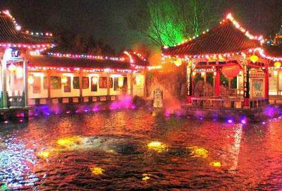 元宵节前夕,数千盏彩灯将济南市趵突泉公园装点得分外妖娆。