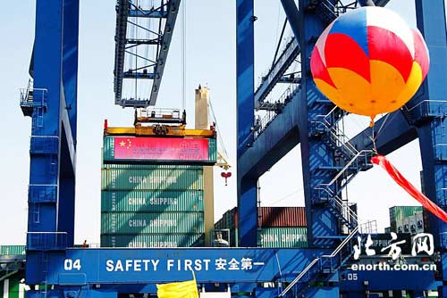 | 天津港五洲国际码头36号泊位前举行隆重起运仪式 |