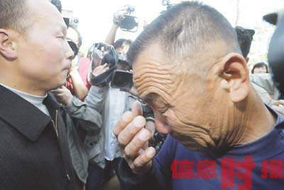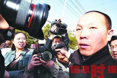 佘祥林走出法院重获自由。众媒体记者问及佘的感受时,他一句话也没有说。