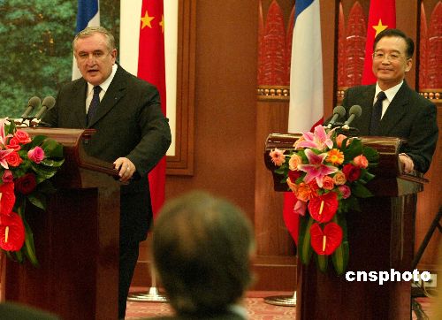 | 中国国务院总理温家宝与法国总理拉法兰四月二十一日在北京共同会见中外记者 |
