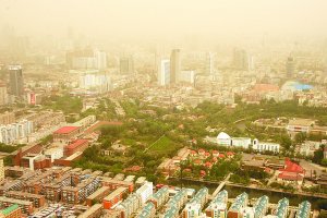 从昨日清晨起,受上游沙源地蒙古气旋和东移南下冷空气的影响,天津市出现了今春以来范围最强、最广的一次扬沙天气。针对这种天气情况,市气象台在上午8时15分向市区及各区县发布了沙尘暴蓝色预警信号。