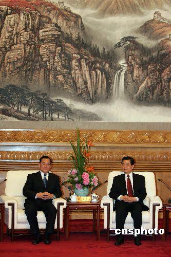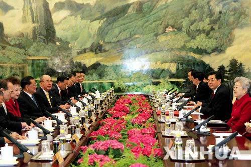 中共中央总书记胡锦涛,四月二十九日下午在北京人民大会堂,会见中国国民党主席连战一行。