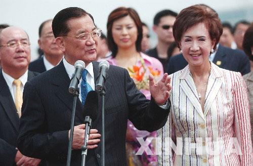 4月30日,中国国民党主席连战率领国民党大陆访问团抵达西安咸阳机场。这是连战夫妇接受西安后宰门小学学生献花。