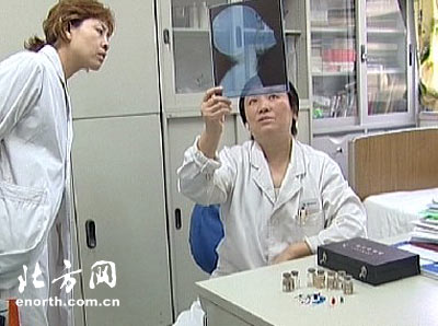 | 医生查看小患者的X光片 |