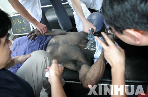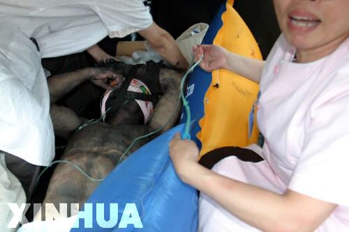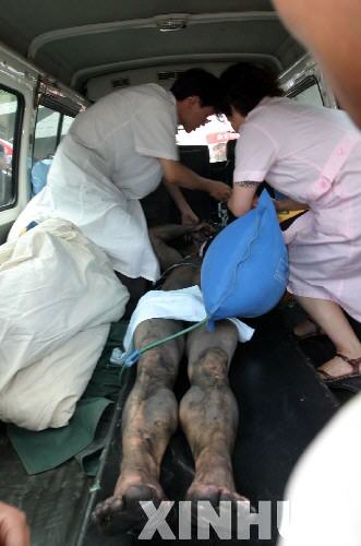 5月30日,获救矿工被迅速送往龙岩市急救中心。截止到当日20时25分,记者从福建龙岩赤坑煤矿救援现场获悉,12名被困矿工中位于水面以上的4名矿工中2人遇难,2人获救,其余位于水面以下的8人生死不明,生还希望渺茫。