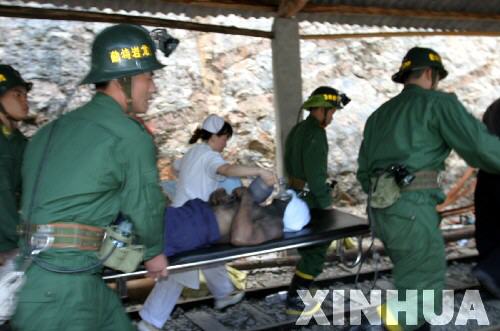 5月30日15时50分,救援人员将第一位获救矿工送去急救。