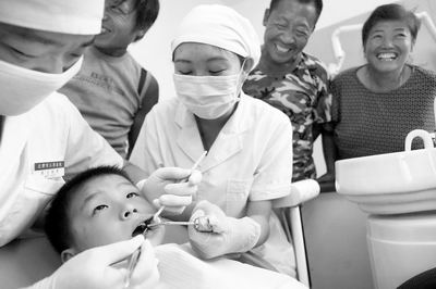 27日下午,80名表现突出的外来务工人员子女在天津市三潭医院进行了牙齿矫正免费义诊,这些农民工来自本市20余个建设施工现场,检查中发现有90%的农民工子女患有牙齿排列不齐现象。据介绍,造成这种现象的主要原因是这些外来务工人员整日忙于打工,忽视了对子女牙齿的日常维护,同时对孩子平日用牙齿叼铅笔等不良习惯也没有及时纠正。