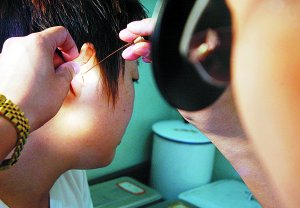 下午4时许,记者来到黄河医院耳鼻喉科,鼓膜穿孔的妇女表情痛苦地躺在病床上,正在接受电耳镜的检查。据该妇女称,不久前,她游泳时耳道内进了水,她立即将手指深入耳道进行清理,但清理中不慎弄破了耳道内皮肤。