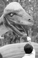 “修补模型需要时间,模型身上暂时会有‘补丁’,有时前几个还没修好,后几个又被弄坏了,让我们也感觉很难办。”维修人员对记者说,“听到游客们指责模型残破,我们心里也很不舒服,只希望广大游客能自觉地文明游园,让更多的游客看到这些亿万年后的动物。”