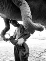 维修人员指着巨兽身体上的伤口对记者说:“由于动物做得比较逼真,一些不文明的游客便想看看里面的奥秘,竟用刀子划开模型表皮,他们是满足好奇心了,模型却只能‘负伤’展出,留给其他游客的只有遗憾。”
