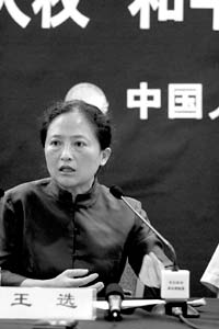 侵华日军细菌战中国受害者诉讼原告团团长王选女士在基金成立发布会上发言