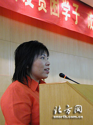 站在捐款人讲台上的邓亚萍比赛场上更美丽
