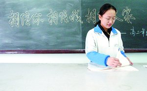 “挑战自我,战胜自我,今天我是主考官。”“相信你、相信我、相信大家。”在考场上记者看到许多学生们用于自励的标语。据天津中学校长国赫孚介绍,采用“诚信考试”的方式,其实是一个让学生们进行自我教育的过程,培养学生诚实的品质和责任心。“考试成绩不排名次,这样减少了学生们的心理压力。”国校长表示,关键是教育学生从根本上理解学习的目的和意义,养成一个诚实守信的好品质,也正好契合了天津中学的校训即“为成功人生做准备”。