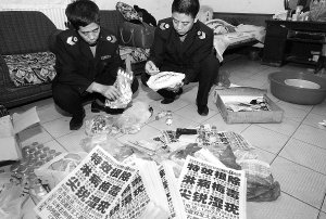 这些标有红十字和数字的民房是做什么的呢?暗访小组走进挂有红十字标志的院落,里面住着五六户人家。根据红十字标志和墙上的“6”,暗访小组很快找到了电线杆上的红十字和“6”指示的房间。该房间由里外2间组成,面积均在10平方米左右,光线很暗。外屋的玻璃柜里摆满了各种药品,桌子上的玻璃板下压着各种性病症状图片。里屋有一张床,地上堆着很多药瓶和废弃的一次性输液管。一名四十岁左右的男子见有人进来,立即从床上爬起来,捋着蓬乱的头发,他操着带有浓重湖北口音的普通话,招待暗访小组坐下。