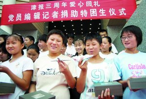 天津日报报业集团广泛开展爱心助学活动,帮助许多困难学子圆了大学梦,用教育活动的实际效果展示了党的先进性。