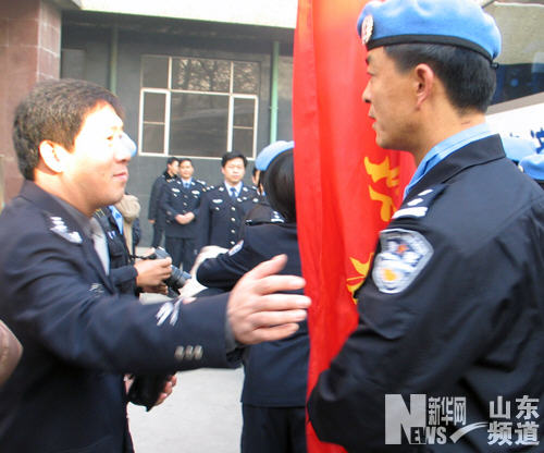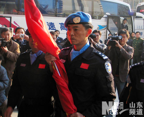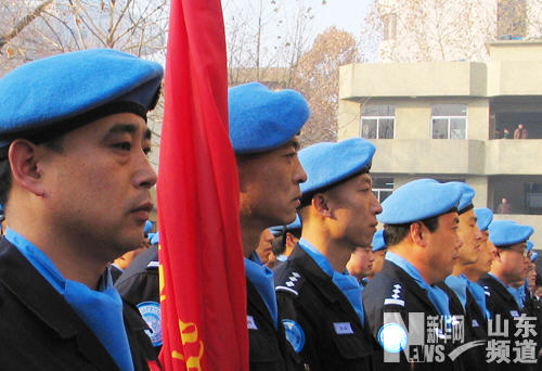 今天上午,山东省公安厅举行了简短而隆重的欢送仪式,为山东省即将赴海地执行维和任务的95名防暴警察送行。仪式结束后他们将直接赶赴河北廊坊训练基地,再进行三天的集结后于12月12日乘专机飞赴海地。