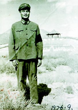 这张旧照片是二十九年前在新疆戈壁滩核试验基地拍摄的。我的手臂上戴着黑纱, 那是因为毛泽东主席刚刚去世。这幅照片平静的画面,蕴藏着我的一生中最为惊心动魄的一段经历。
