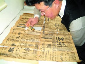 “最近我在家中发现两张清代光绪年间的老报纸,由于报纸距今已有98年,所以局部已经破碎。”昨日,读者李先生联系到本报,称他家有两张发行于1908年4月的天津《中外实报》,他想将报纸修复后收藏,但一直找不到好的修复方法。