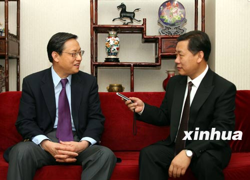 | 4月13日,中国驻美国大使周文重(左)在华盛顿接受新华社记者专访。 |