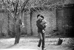 抱小孩的妇女出现在路边