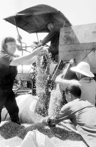天津市160万亩小麦已正式全面进入收获期。昨天,记者跟随天津市农业局组织的“三夏”支农队,来到了静海县收麦区,该县的10多万亩小麦已收割过半。据介绍,从本周开始,随着4000多台联合收割机进入武清、宝坻、蓟县等地麦田机收,本市夏粮收获全面进入高潮。为确保全年粮食丰产,农业部门帮助农民一边抢收一边抢种。种子部门已经备齐300多万公斤夏玉米等粮种,确保全市近200万亩秋粮抢播。