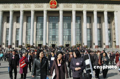 全国政协十届四次会议在北京人民大会堂闭幕。委员们满面笑容步出人民大会堂。
