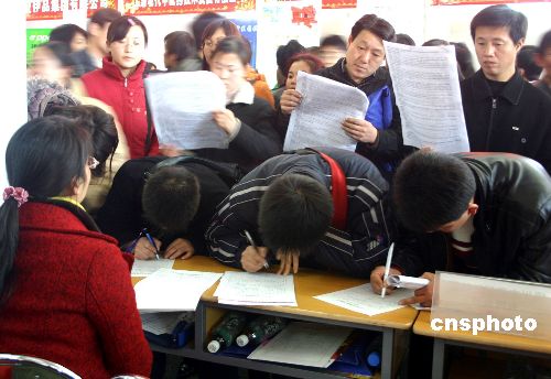 资料图:2006年2月18日,近万人参加了在宁夏银川市举办的人才招聘会,场面十分火爆。为了缓减就业压力和解决基层人才不足问题,宁夏积极引导鼓励毕业生到基层就业