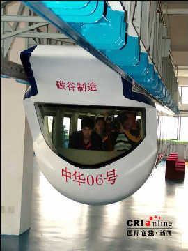 运行中的“中华06号”轻型吊轨磁悬浮技术验证车
